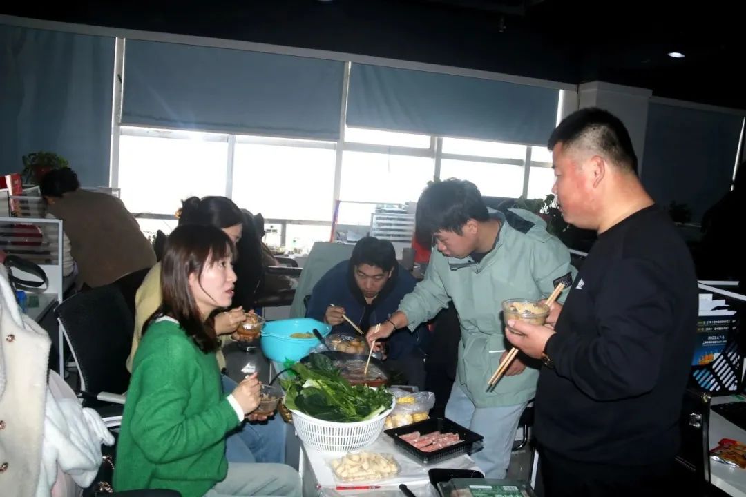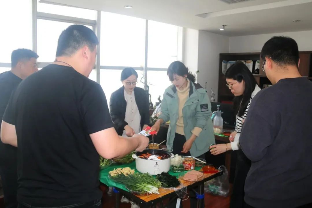 紧接着“火锅宴”正式开始!大家准备各类火锅食材,有条不紊地忙碌着。在热辣滚烫的氛围中,大家传递着菜品,为同事夹上刚出锅的羊肉卷,火锅的温暖驱赶了窗外的寒意。气氛高涨之际,大家举杯共饮,彼此勉励,满腔热忱,畅想在今后的工作中,齐心协力去实现集团发展的共同目标。
