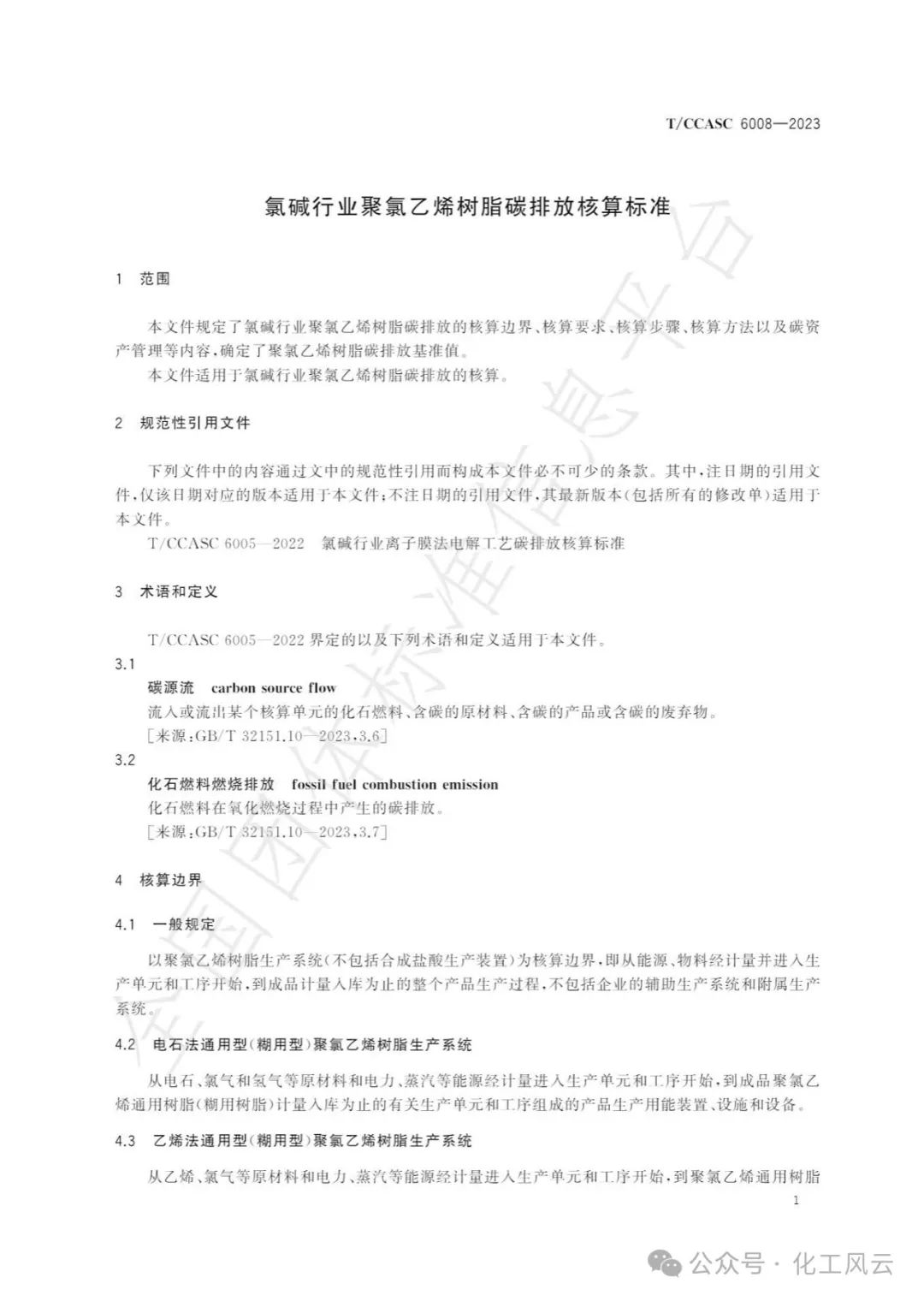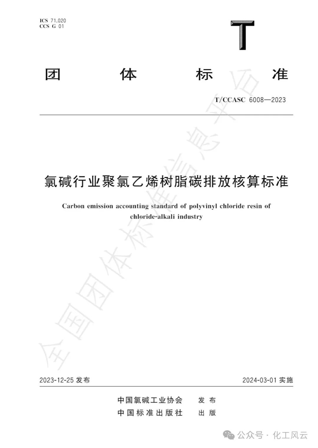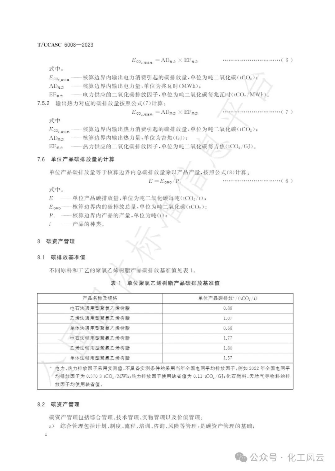 TCCASC6008-2023《氯碱行业聚氯乙烯树脂碳排放核算标准》
