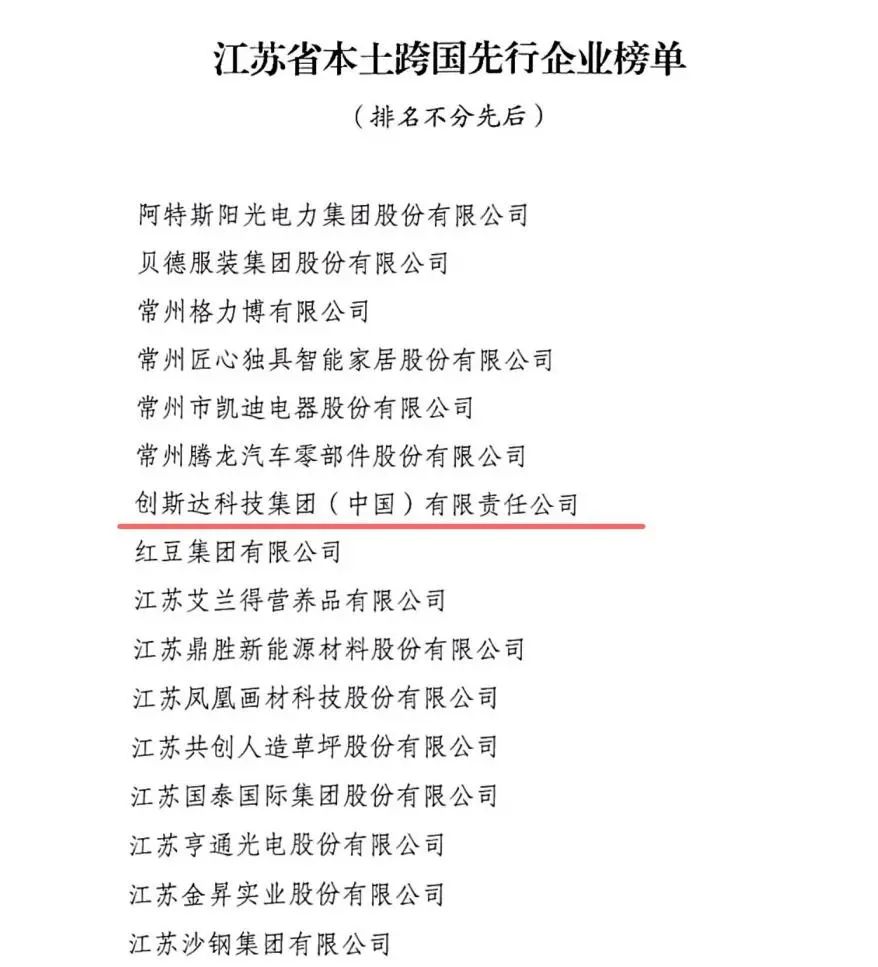 为推动全省走出去企业学习借鉴先进经验,不断优化生产网络和产业链布局,积极稳妥开展跨境产业链合作,增强国际市场资源整合能力和国际化经营水平,2023年12月,由省商务厅作为支持单位,省工商联、省国际投资促进中心和省社科院世界经济研究所在无锡首次发布江苏省本土跨国先行企业榜单。
