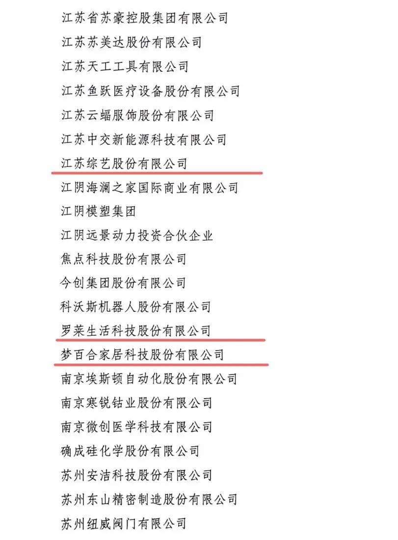 2月19日,省商务厅印发《省商务厅关于江苏省本土跨国先行企业榜单的通报》(苏商经〔2024〕42号),通报江苏省本土跨国先行企业共50家,其中南通6家企业入选,占比12%。它们分别是:创斯达科技集团(中国)有限责任公司、江苏综艺股份有限公司、罗莱生活科技股份有限公司、梦百合家居科技股份有限公司、中国天楹股份有限公司、中天科技海缆股份有限公司。