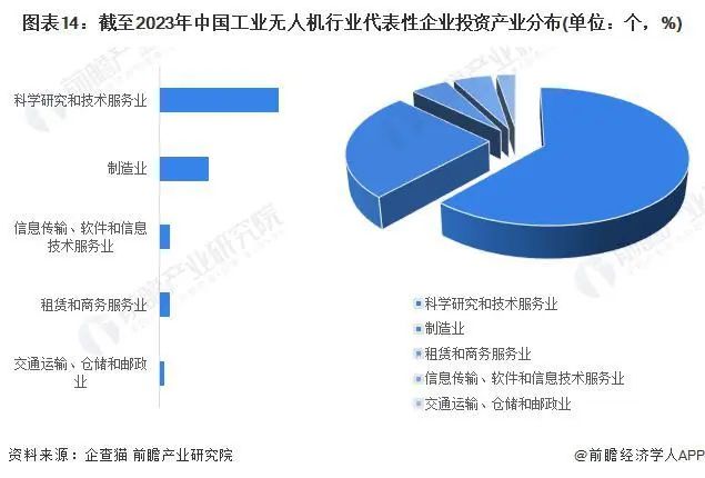 从工业无人机代表性企业近年来的对外投资赛道情况可以看出,投资科学研究和技术服务业、制造业占据多数,工业无人机代表性企业以投资布局相关赛道扩展产业规模、加速无人机产品的更新迭代。