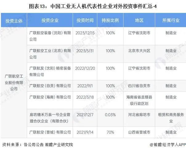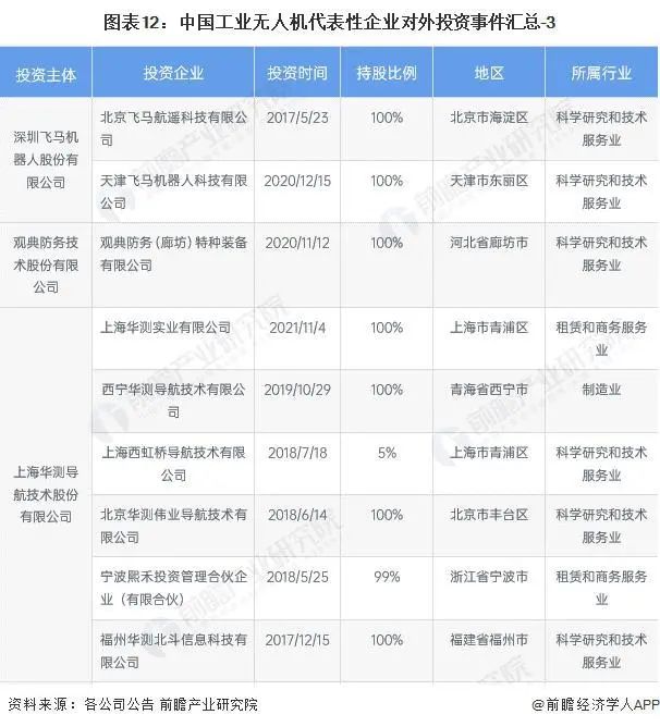 工业无人机产业代表性企业最新投资动向