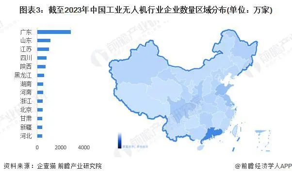 工业无人机产业链区域热力地图:以广东地区最为集聚