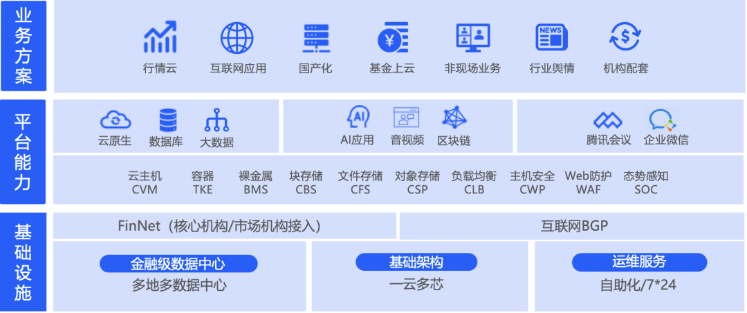 深证通充分发挥在行业内IT基础设施建设、运营,以及专业化服务方面的优势,聚合腾讯云在云计算、大数据、人工智能、区块链等方面的新兴技术积累,以腾讯云技术方案TCE为基础,建设面向证券、基金、期货机构的新一代证券行业云,并成为行业金融科技汇聚与创新的开放平台。
