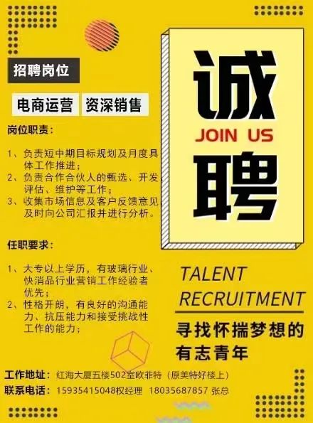 工作地点:祁县南庄路口华达玻璃厂内 联系电话:13383443881/13209885585