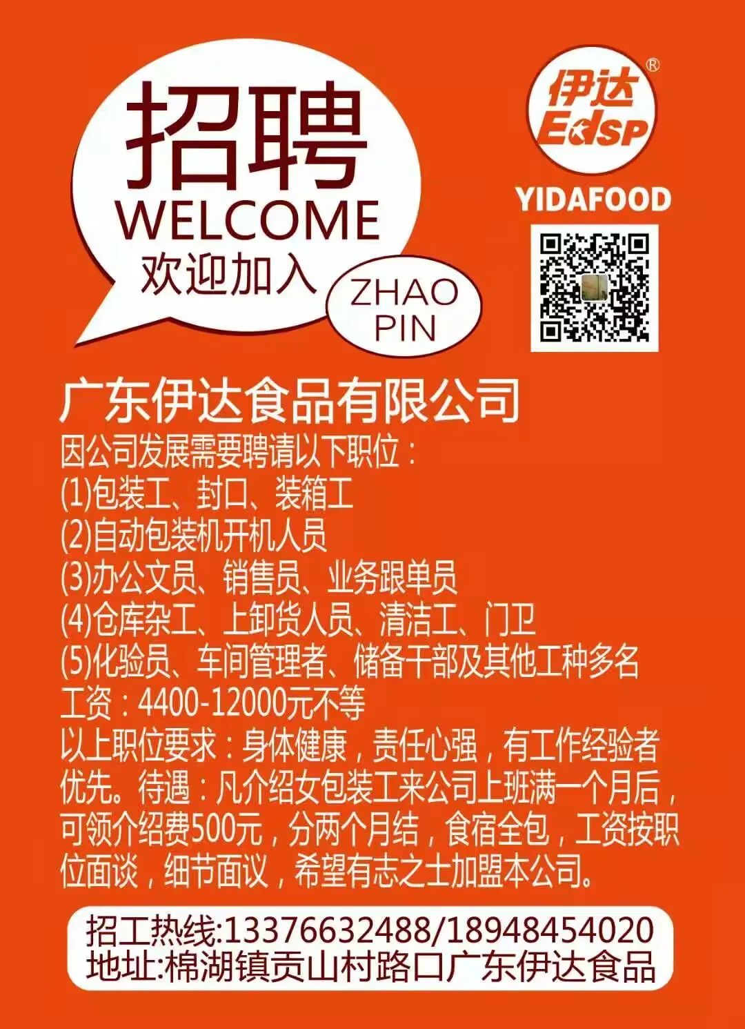 待遇:凡介绍女包装工来公司上班满一个月后,可领介绍费500元,分两个月结,食宿全包工资按职位面谈,细节面议,希望有志之士加盟本公司。