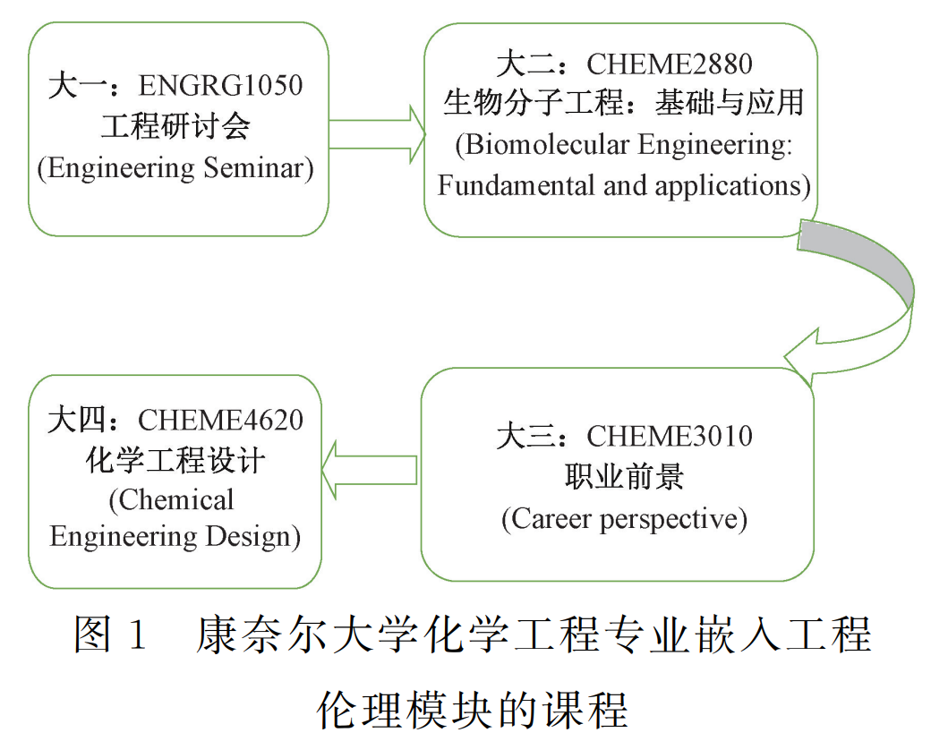 从内部因素看,康奈尔大学工程学院落实美国工程与技术认证委员会对学生能力提出的具体要求,将工程伦理教育落实到人才培养实践中。该校在设定工程人才培养目标时就提出,“设计工程解决方案时,要考虑到工程设计对人类、社会和环境造成的影响;学生能够认识到他们的道德责任,为应对人类面临的社会、经济和环境挑战作出贡献”[12]。康奈尔大学工程学院各专业还将工程伦理纳入学习成果评价环节。以化学工程专业为例,学生在工程伦理方面应取得的学习成果表述为:工程设计考虑公共卫生、安全和福祉,学生能够认识到自身的道德和专业责任,考虑工程解决方案在全球经济、环境和社会背景下的影响[13]。