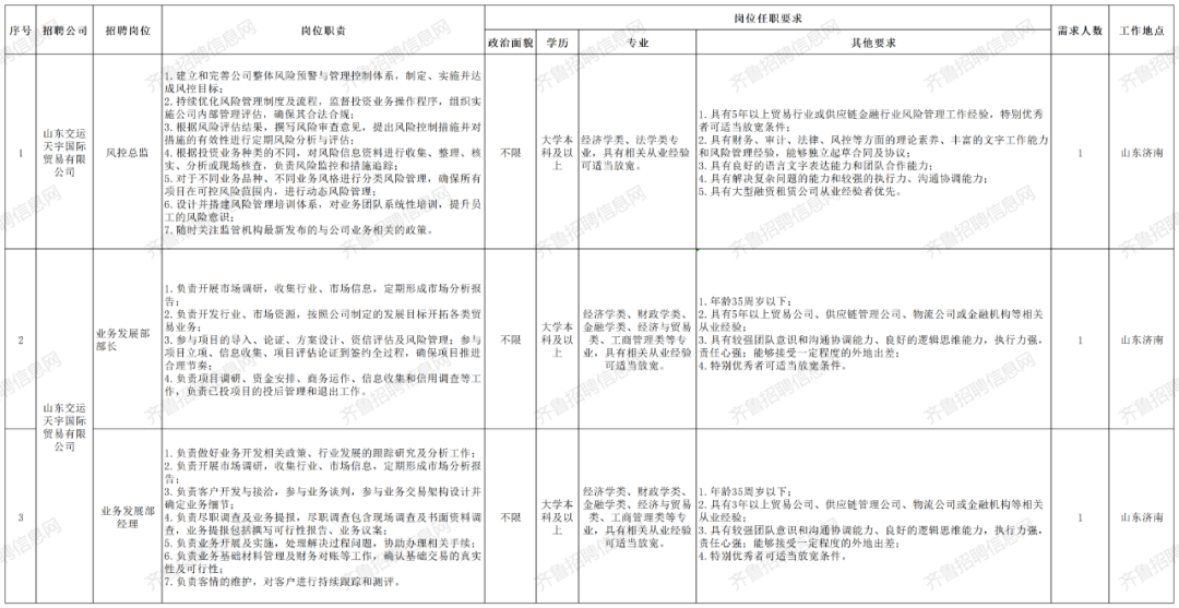 2024年“才聚齐鲁 成就未来” 山东交运天宇国际贸易有限公司招聘公告