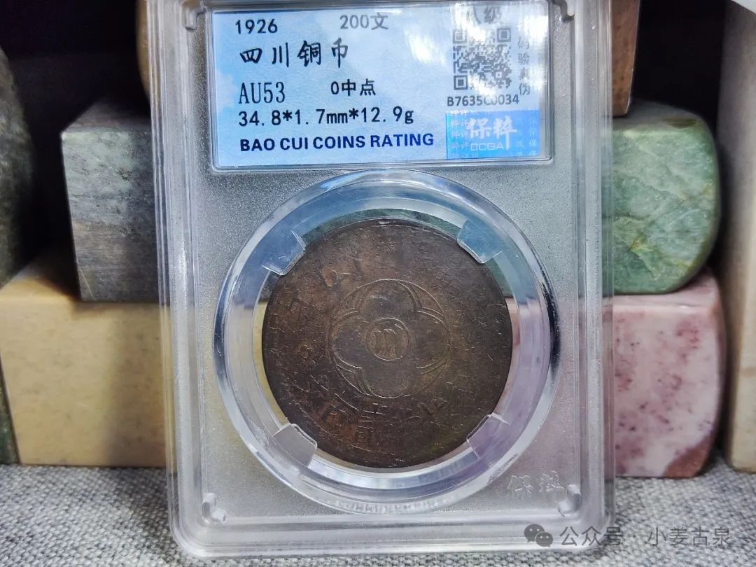 40.保粹au53 四川铜币二百文 0中点 八级币
