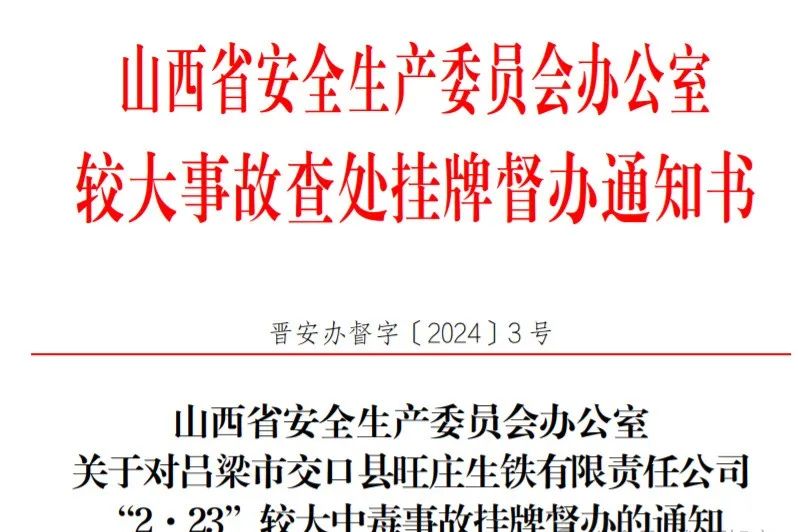 根据《国务院关于进一步加强企业安全生产工作的通知》《山西省较大事故查处挂牌督办办法》等有关规定要求,省安委办决定对该起事故查处实行挂牌督办。