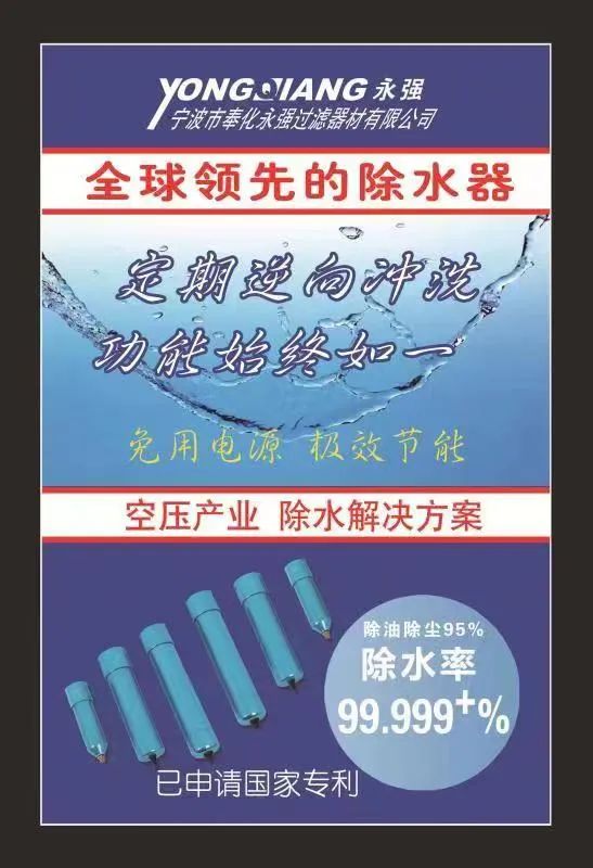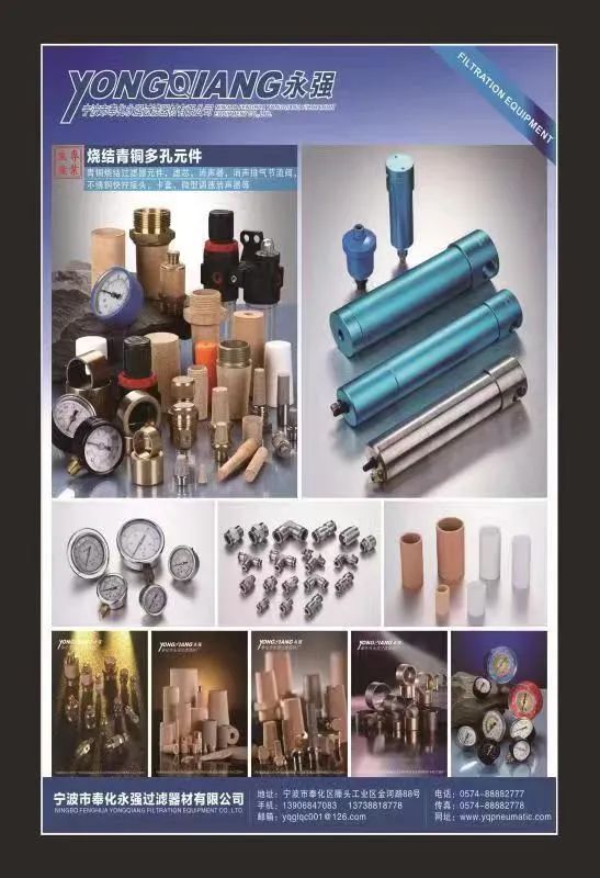 奉化永强气动专业生产各种铜,塑料,不锈钢消声器,纤维滤芯,青铜滤芯,PE、PP塑料滤芯,气缸含油轴承,塑料自润滑轴承,各种压力表,不锈钢快速接头,(专业空压机,除水阻水解决方案提供,除水率99.999%除油杂质96%露点可达到负10--12是国内唯一有干燥功能除水神器,终身保修)浙江省宁波市奉化区四明东路299号,谢谢各位新老客户光临指导!!