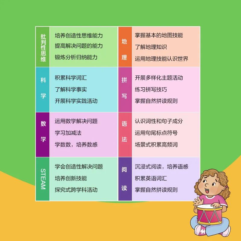 相比原版全英文内容,这套书里的批判性思维、科学、数学、STEAM、地理五大主题都是中文版,每个中国家庭都能用。