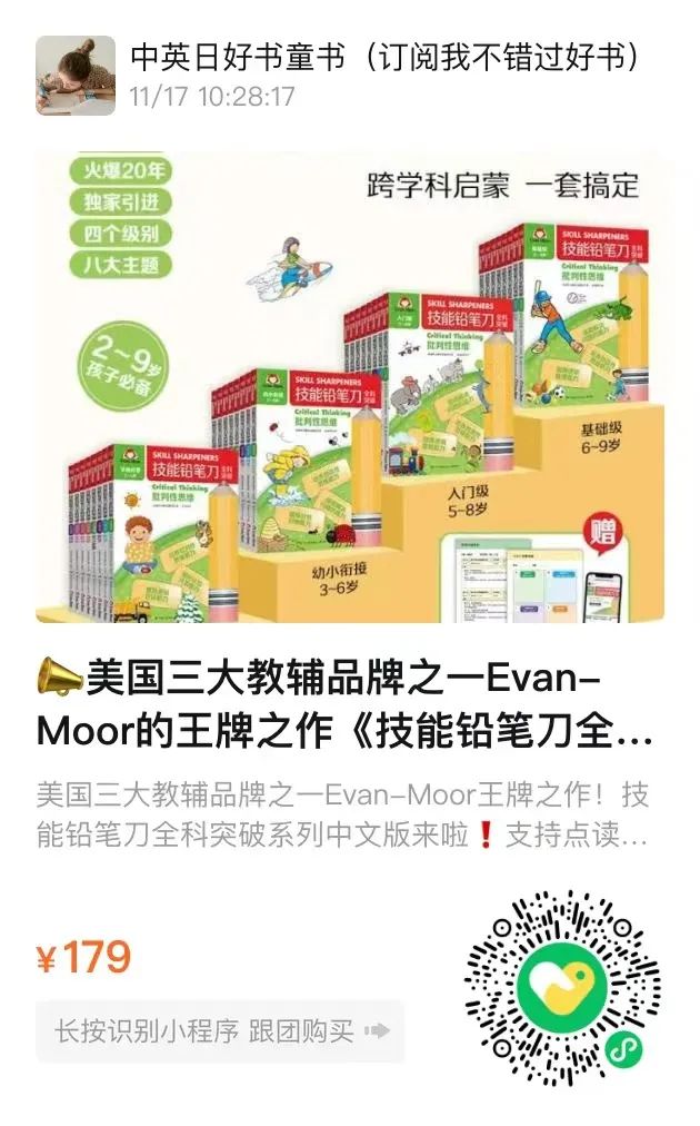 更多优质好价中英日图书,儿童好书、教育学习资源和售后,请加以上客服入拼团群~