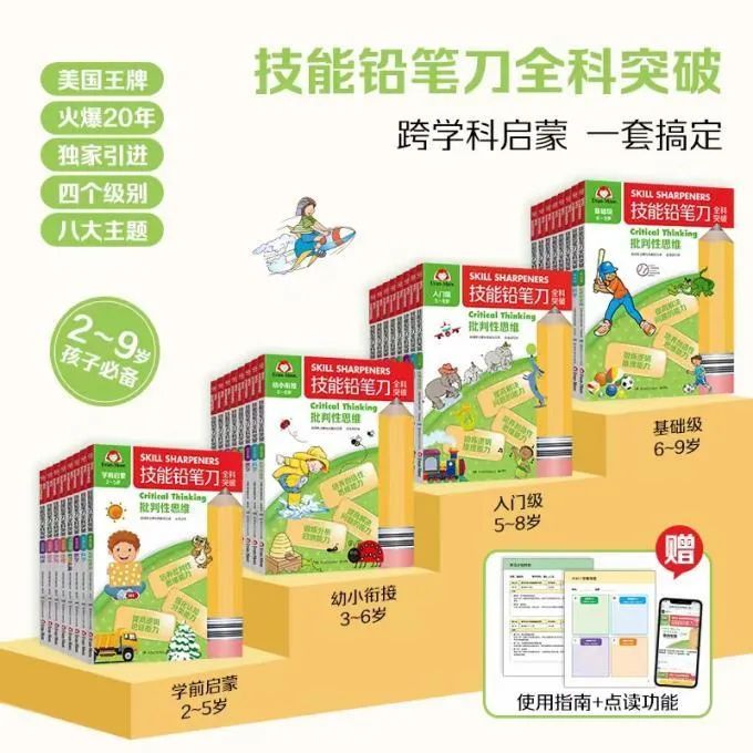 这个系列其实已经持续了将近20年,零几年开始陆陆续续推出英语学习的阅读、语法和拼写几本,紧跟儿童教育的发展趋势和孩子们学习的需要,这些年不断增加新主题,像批判性思维和STEAM就是最新才出版的。