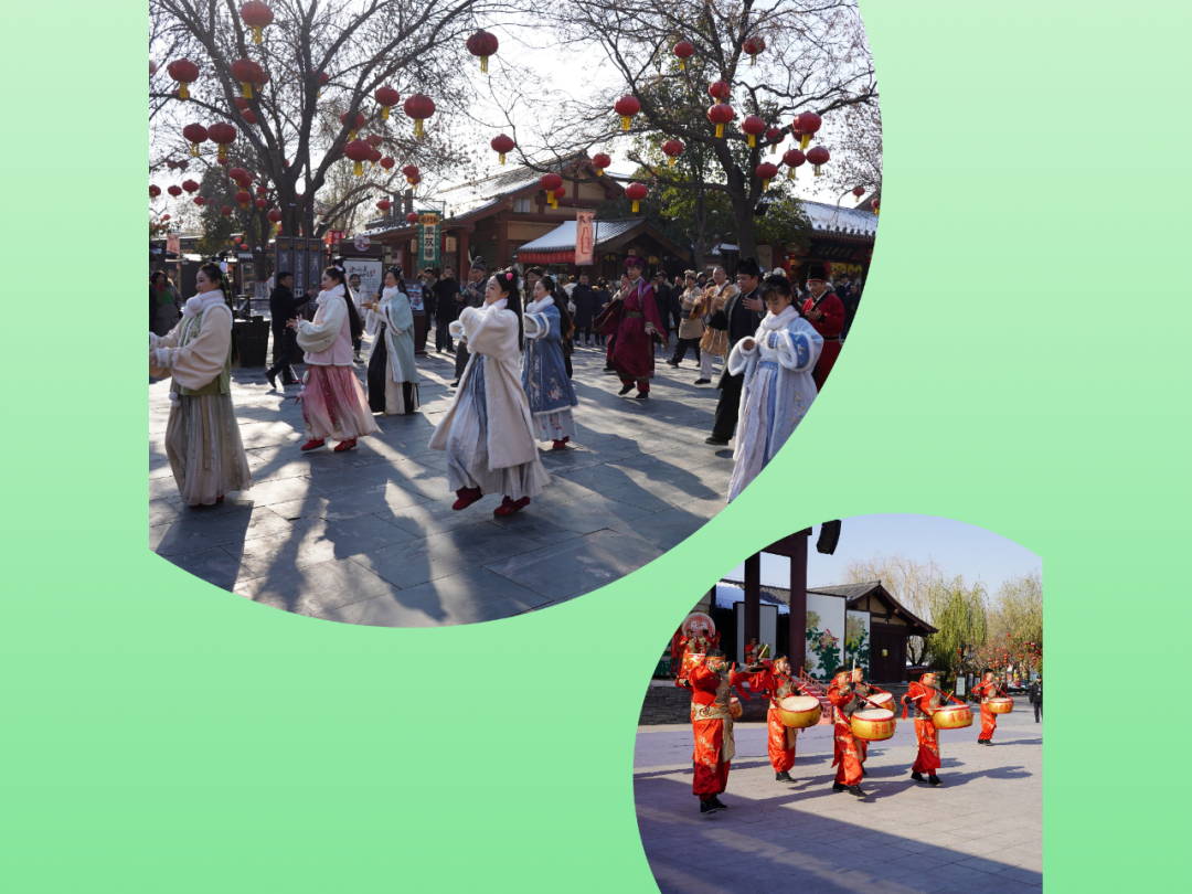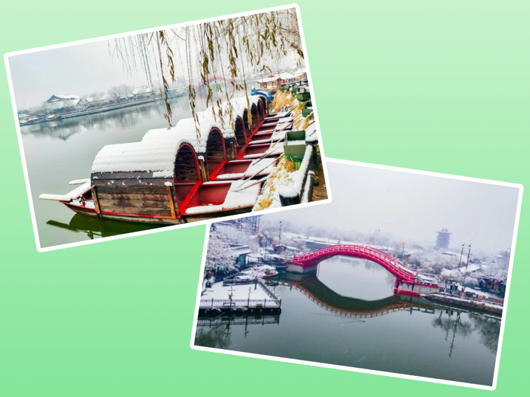一踏入清明上河园,仿佛立刻穿越到了那个繁华的宋朝。古色古香的建筑、栩栩如生的雕塑,以及精心布置的园林景观,每一处都令人惊叹不已。冬日时分,园内的植物依与白色的雪花相映成趣,更增添了几分韵味。