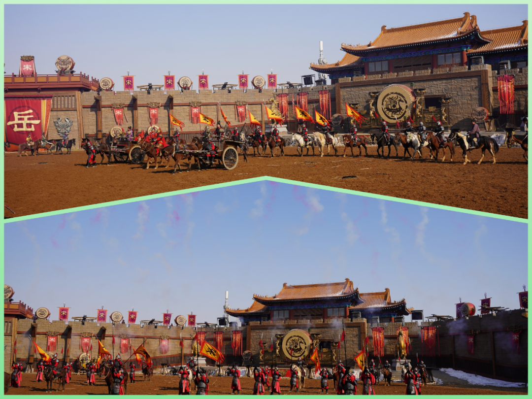 最令人难忘的莫过于《岳飞枪挑小梁王》大型表演,节目是一场集武术、戏剧、舞蹈和音乐于一体的精彩表演。整个节目以岳飞与小梁王的激战为核心,通过逼真的舞台效果和演员们的精湛表演,再现了那段壮烈的历史。现场旗帜飘扬,战鼓震天。演员们身着战甲,手持兵器,一登场就让人感受到了浓烈的战斗气息。岳飞身披战袍,手持长枪,目光坚定;小梁王则威风凛凛,气焰嚣张。两人的对峙立刻引发了观众的热烈关注。随着战鼓声急促响起,岳飞与小梁王展开了一场激烈的拼杀。