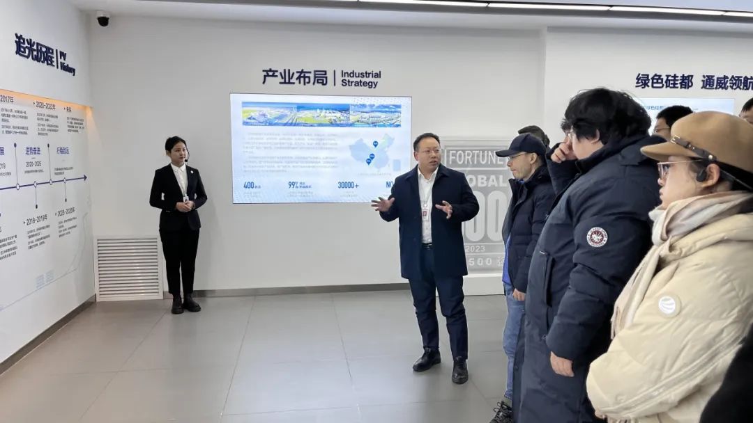 图为支队参观通威高纯晶硅公司展厅