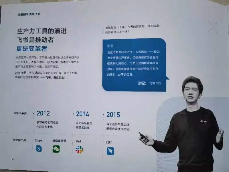 之后,飞书团队代表较为详尽地介绍了飞书业务,整体诠释了——