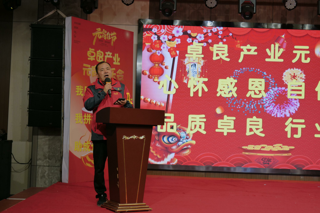 活动伊始,卓良产业副董事长卓建明发表致辞,代表卓良产业向大家致以最衷心的祝福。卓良自2003年成立以来,已经从单一的木材加工拓展到房地产、餐饮、娱乐、农业等多元化产业。每一次的转型与升级,都离不开大家的辛勤付出和智慧。未来,卓良将继续坚持创新、务实,不断开拓市场,为客户创造更大价值。同时,也将重视员工的成长,提供更多学习机会,为实现共富裕共同努力。