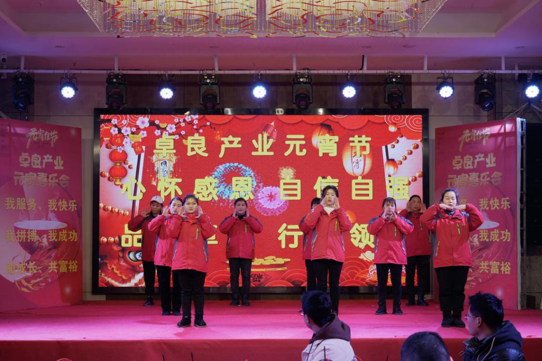 喜乐会在舞蹈《红红火火好运来》中拉开帷幕。表演者个个精神抖擞、神采飞扬,热闹的表演赢得了在场员工的阵阵喝彩声。手势舞《感恩的心》更是把卓良企业文化中“心怀感恩、自信自强”展示得淋漓尽致。
