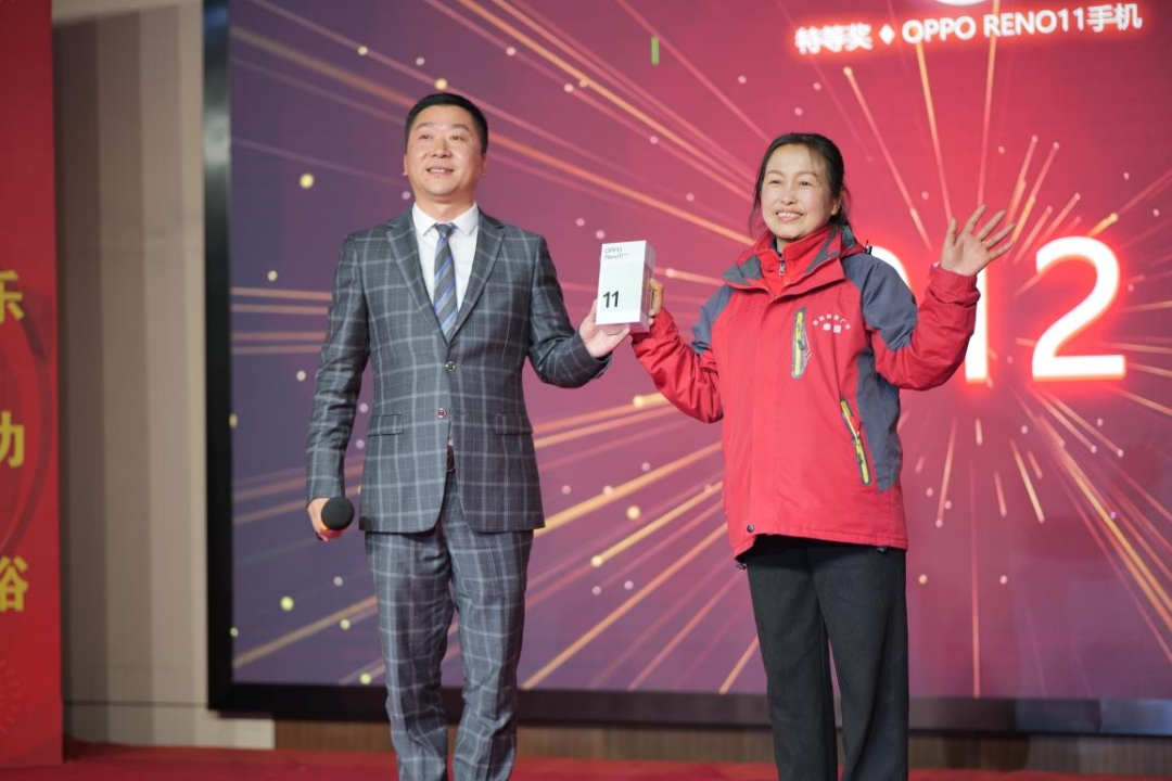 喜乐会上还进行了激动人心的抽奖环节,手机、平板、空气炸锅、电热水壶、纪念水杯……让员工们拿奖拿到手软,现场笑声不断,热闹非凡。