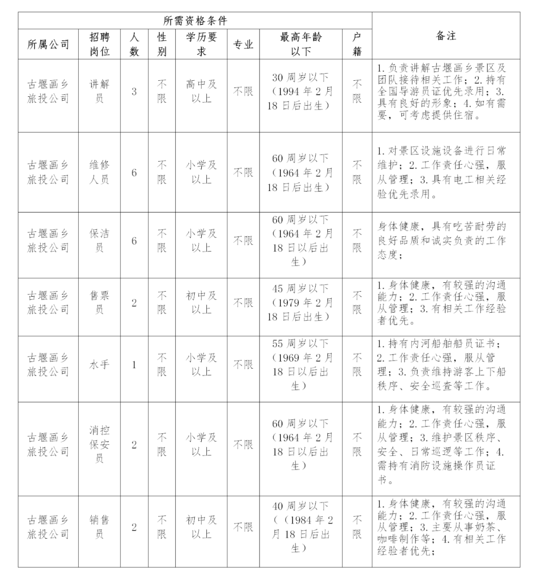2.报名地点:浙江丽水古堰画乡旅游投资有限公司大港头镇主游客中心二楼207办公室。