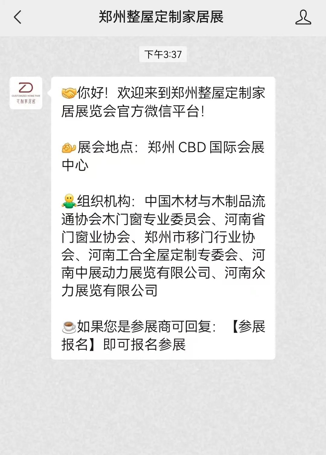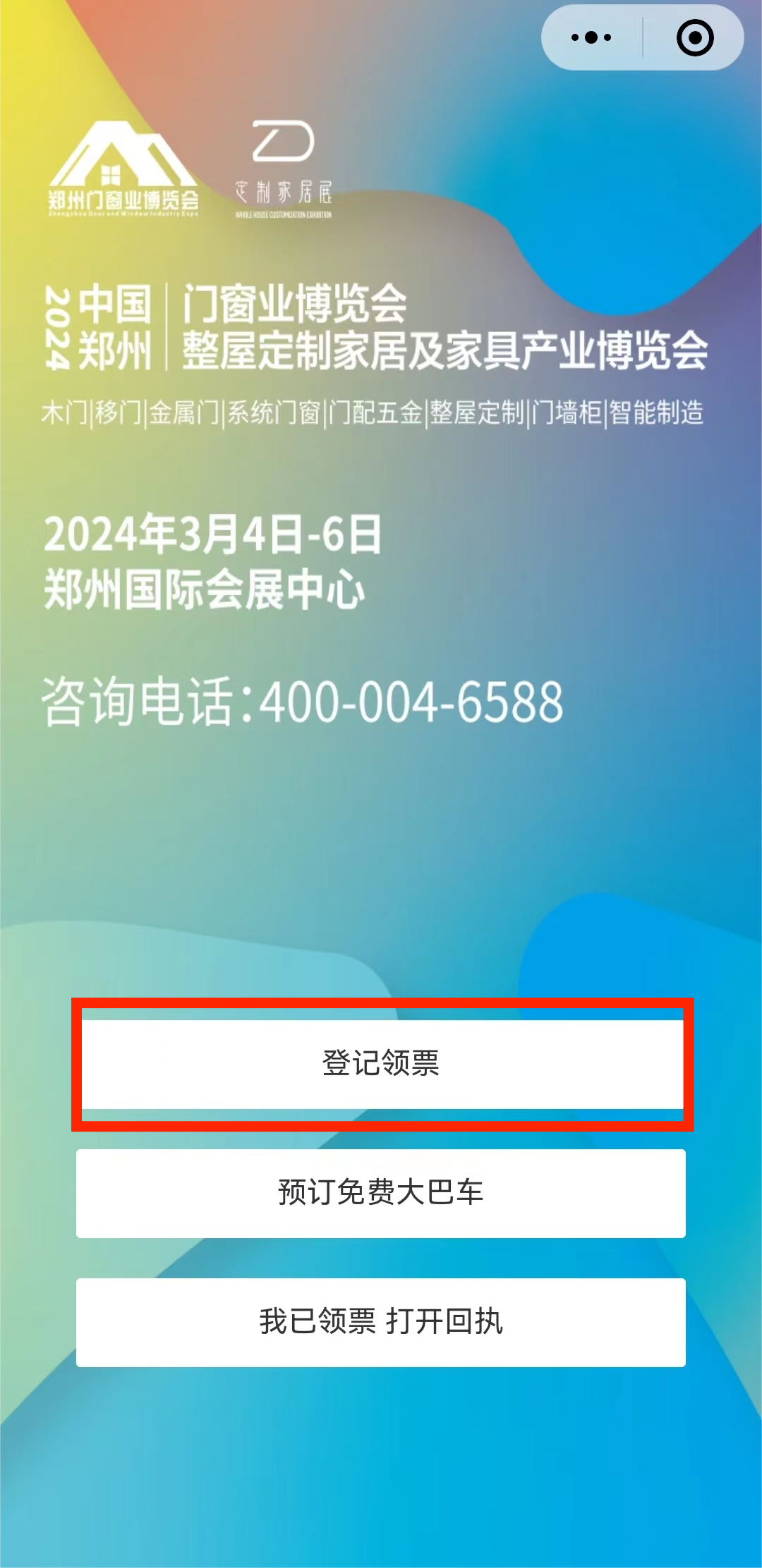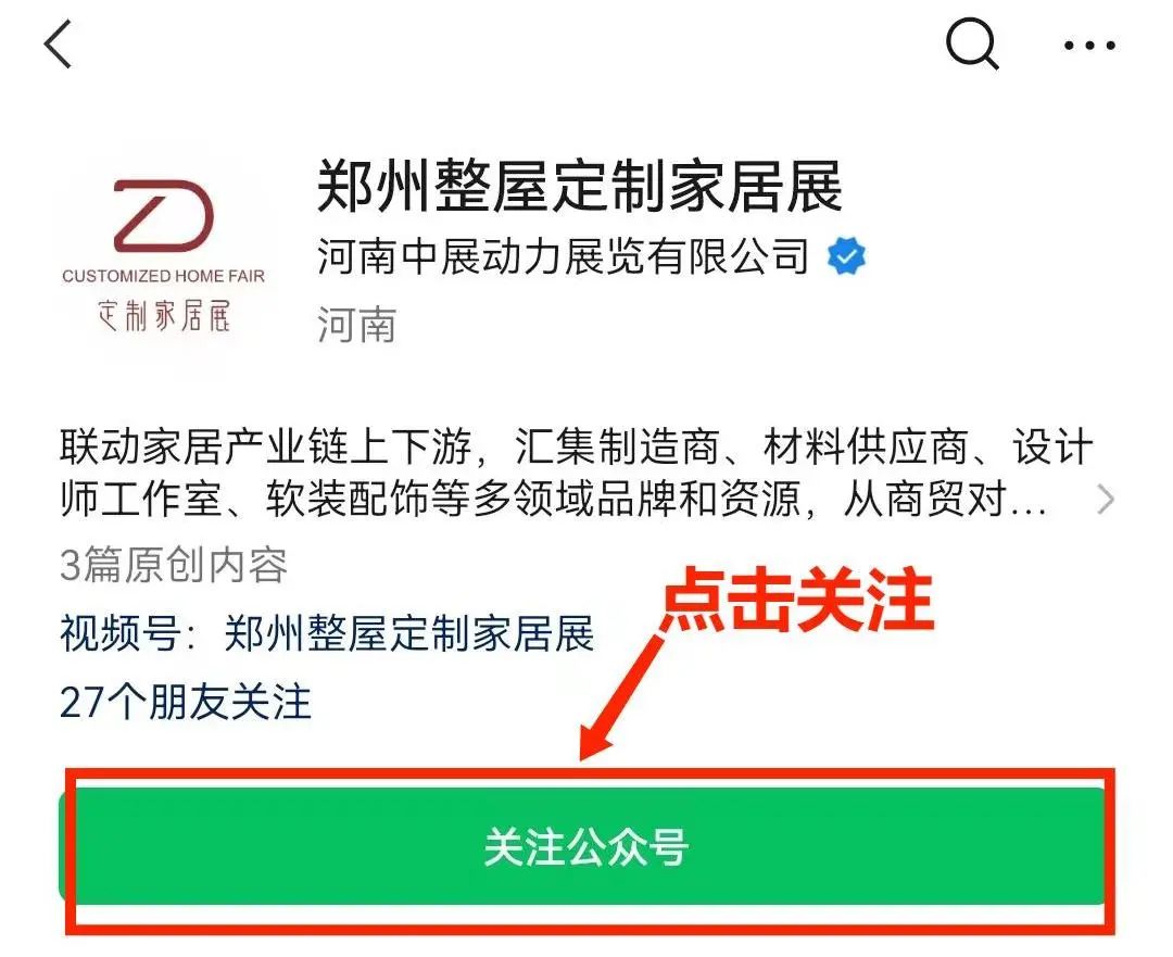 方式二:搜索关注【郑州门窗业博览会】或【郑州整屋定制家居展】微信公众号,点击下方“参观登记”菜单栏;