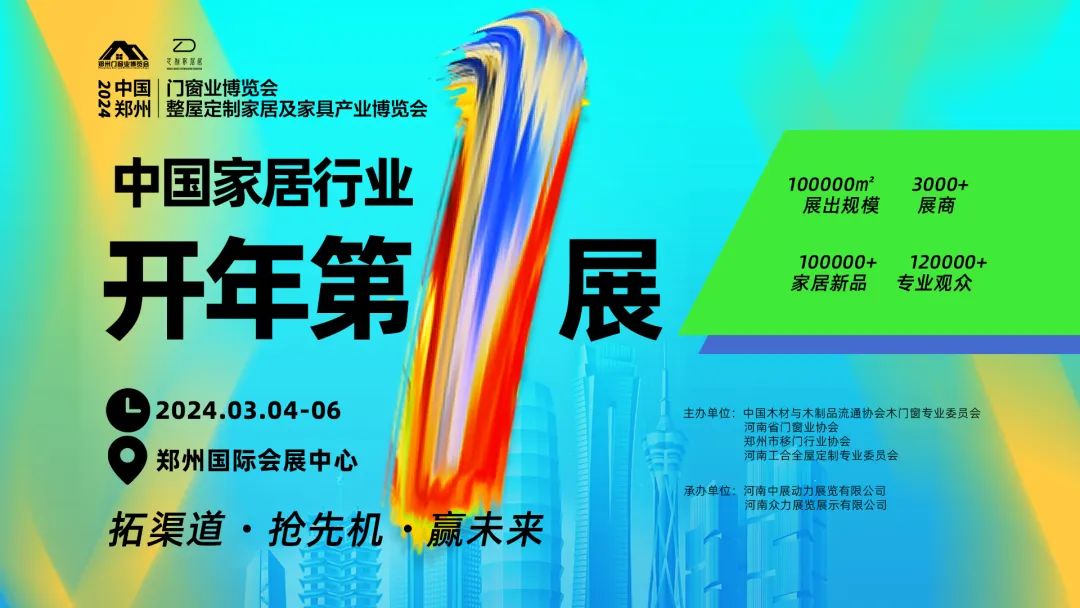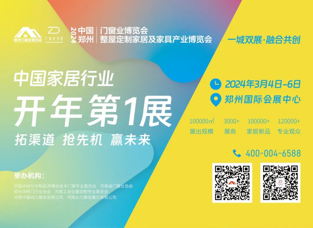 一城双展,融合共创。2024年3月4日-6日,2024中国郑州门窗业博览会、2024中国郑州整屋定制家居及家具产业博览会将在郑州国际会展中心同期盛大召开。