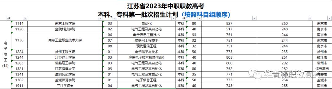 电子电工科目组学生职教高考可以考哪些学校?