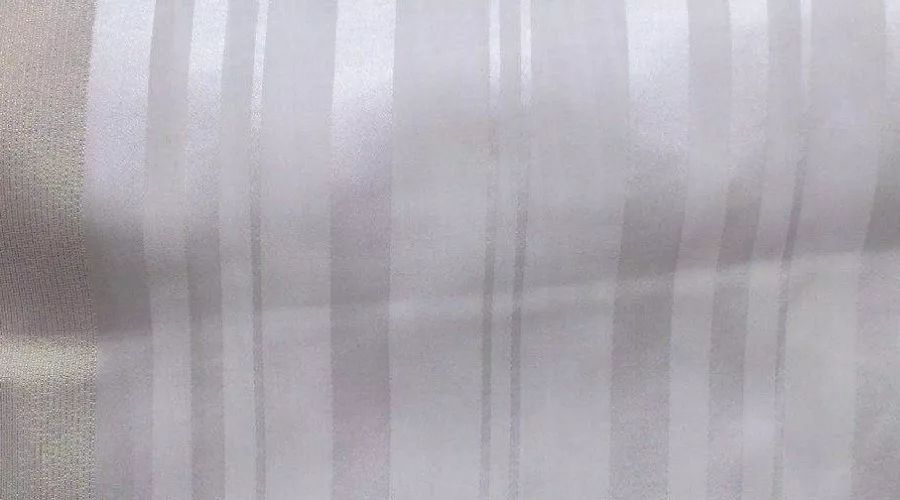 面料特点:绸面平整,底部细致,绸身轻盈透明,手感柔软,表面除有稀疏透明的绡地(平纹)组织外,还夹有直条缎纹组织,即在平纹上装饰缎条花,故名缎条绡。