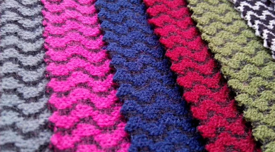 面料特点:其主要风格特征为呢面细洁,呢面具有凹凸纵条纹或花纹,正反面花纹明显不同,手感厚实丰富细腻,富有弹性,光泽柔和,膘光足,呢面因采用不同捻向的纱线间隔排列,形成隐条效应,呢面具有凹凸条纹,富有立体感,另外还配用各种彩色嵌线或利用不同捻向纱线排列成隐条。
