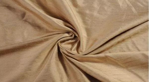 面料特点:双宫绸外观粗犷,绸身坚挺、厚实,色光柔和,比一般真丝绸坚牢。由于双宫丝的丝身具有天然的瘤节,呈不规则的粗细节,再加上纬丝比经丝粗,故成品表面呈现明显而不规则的疙瘩,织成的双宫绸表面粗糙不平整,比较别致。