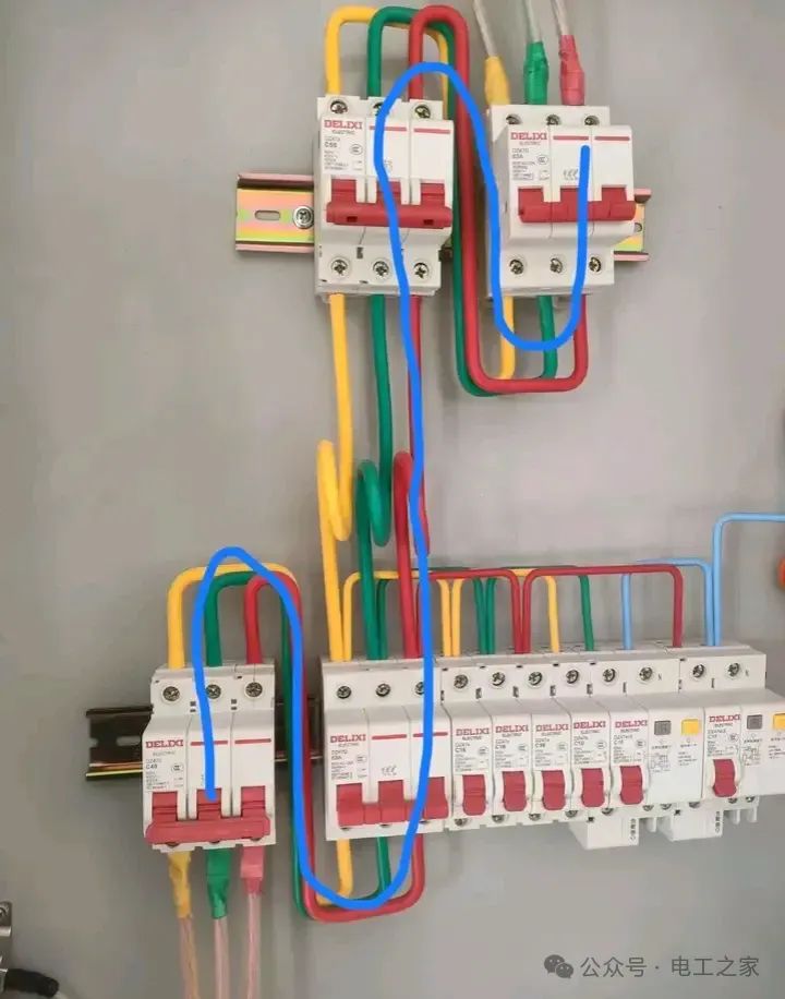 看到一配电箱是这样接的线,说真的我是不明白为啥电工要这样接啊,也许是咱本事不到家吧。始终想不明白,有小伙伴们知道吗?
