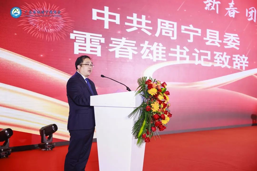 新春团拜会上,中共周宁县委书记雷春首先代表中共周宁县委、周宁县人民政府,对此次活动的顺利举行表示热烈的祝贺,并诚挚邀请大家来周宁共享绿水青山,共创金山银山,最后为大家送上了美好的新春祝福。 朱东炫会长致辞表示,向始终关心和支持商会工作的各位领导、全体乡贤致以最热烈的欢迎和最衷心的感谢。展望新年,在新征程上,宁德商会将从过去的奋斗中汲取力量,不忘初心担使命,砥砺前行展作为,携手在粤宁德籍乡贤们,为闽粤两地高质量发展作贡献。弘扬好弱鸟先飞、滴水穿石,久久为功的闽东精神。为奋力谱写宁德篇章,多尽一份力量,开创商会发展更加璀璨的明天。最后朱东炫会长为大家送上诚挚的祝福,祝愿大家龙年福鼎、身体寿宁、全家福安、四季周宁!