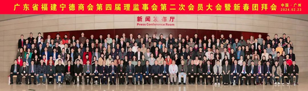 2月23日下午,广东省福建宁德商会第四届理监事会第二次全体会员大会暨2024年新春团拜会在广州市白云区白云国际会议中心珠江厅隆重召开,出席这次活动的领导嘉宾有中共周宁县委书记雷春雄,周宁县委常委、统战部部长李旱雨,周宁县委常委、县政府副县长何晓建,周宁县政府副县长孙永全,周宁县政协副主席、财政局局长陈铃满,周宁县委办主任郑仙绍,周宁县工信局副局长李佐锶,周宁税务局局长吕梁,周宁县委统战部副部长、工商联党组书记肖仙发,广东省福建宁德商会创会会长陈荣华,荣誉会长陈日铃、黄寿强,名誉会长马剑锋、王登乐、徐健家,执行会长韦光清、王纯宇、许妙天、刘雪琴、陆卫平、陈小玲、陈世壁、陈观忠、杨成武、陈弟二、肖运权、杨宝廷、李金峰、李建辉、陈恒惠、陈 锋、邱裕光、陈锦发、吴锦华、卓玉英、郑扬贵、郑国雄、谢尚招、雷 云、凌家强、詹斌斌、魏剑林、魏愈尚、以及广东省福建宁德市人才交流中心的多位人才专家。共计400余名乡贤参加了此次新春盛会。