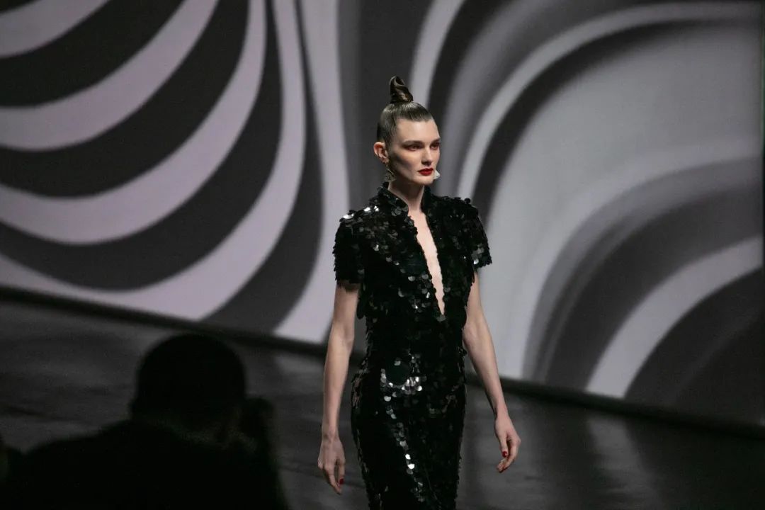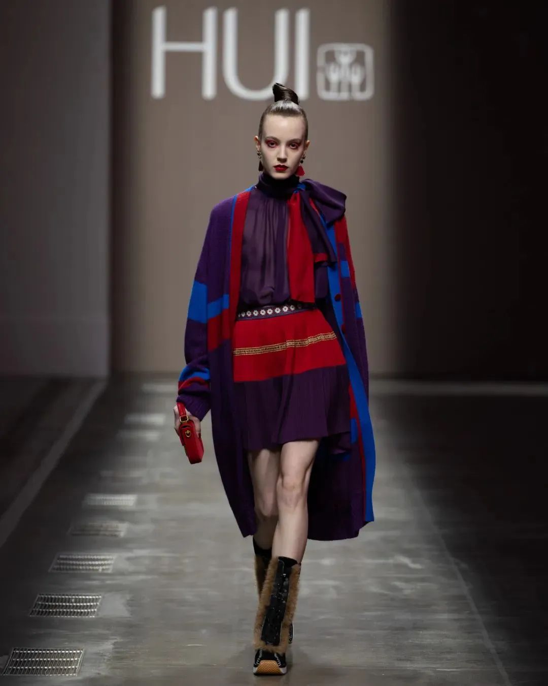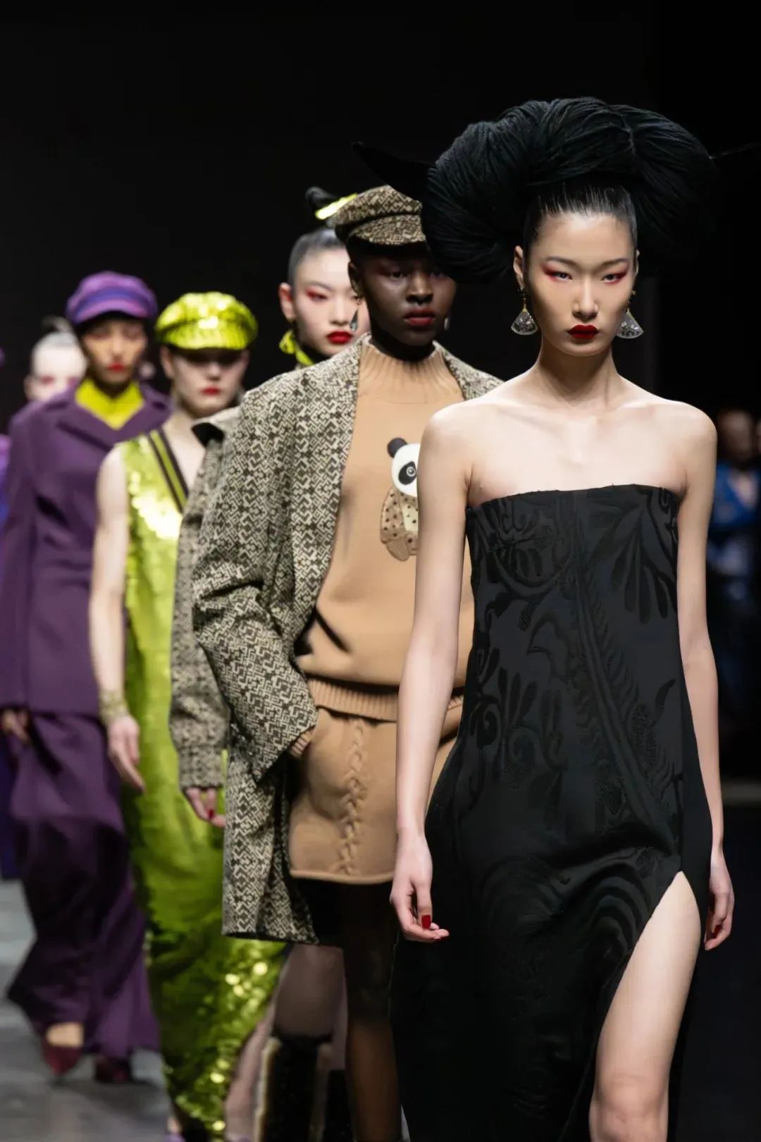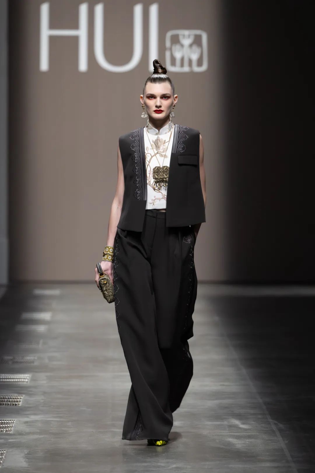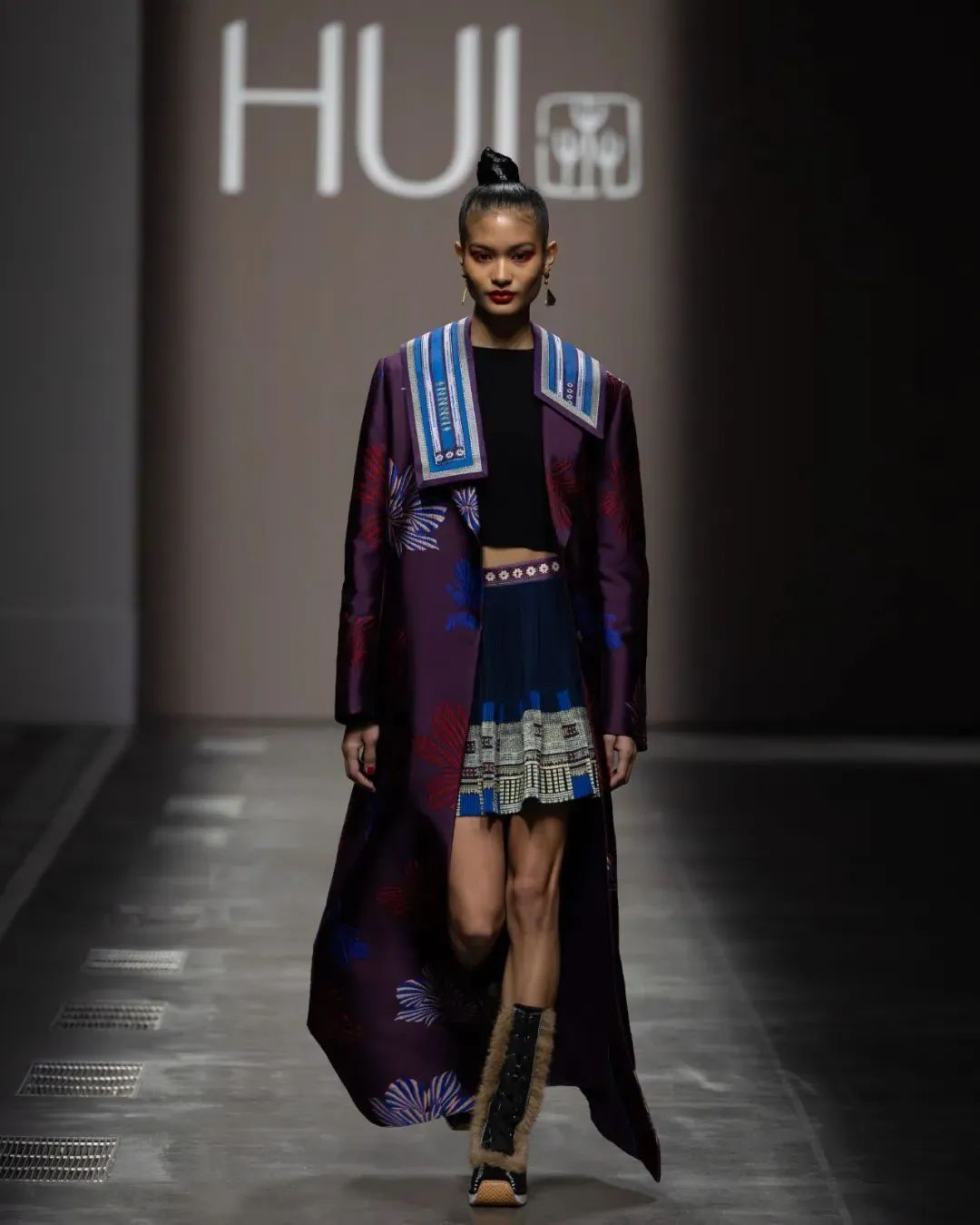 2024秋冬米兰时装周将源于东方的高·髻具象于设计,融入贵州非遗的长角苗、山雀纹等元素,在自然和工艺中感知神秘的人文,唤起与传统的亲昵联结,为服装的质感增添一丝真实感和历史感。