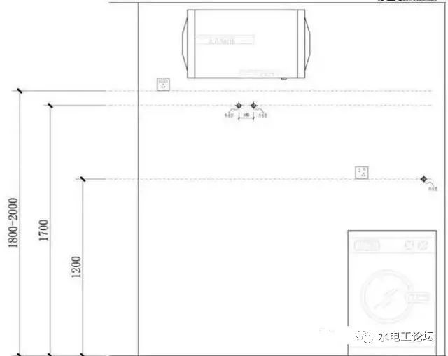 电热水器:一般离地面净尺寸进出水口1700mm,设置冷热进出水口,冷热水管应左热右冷。