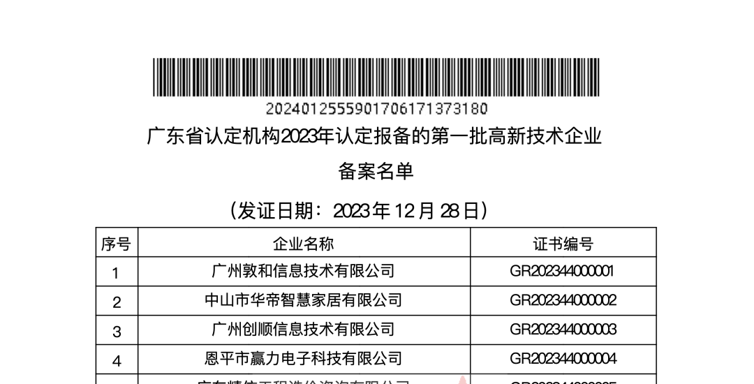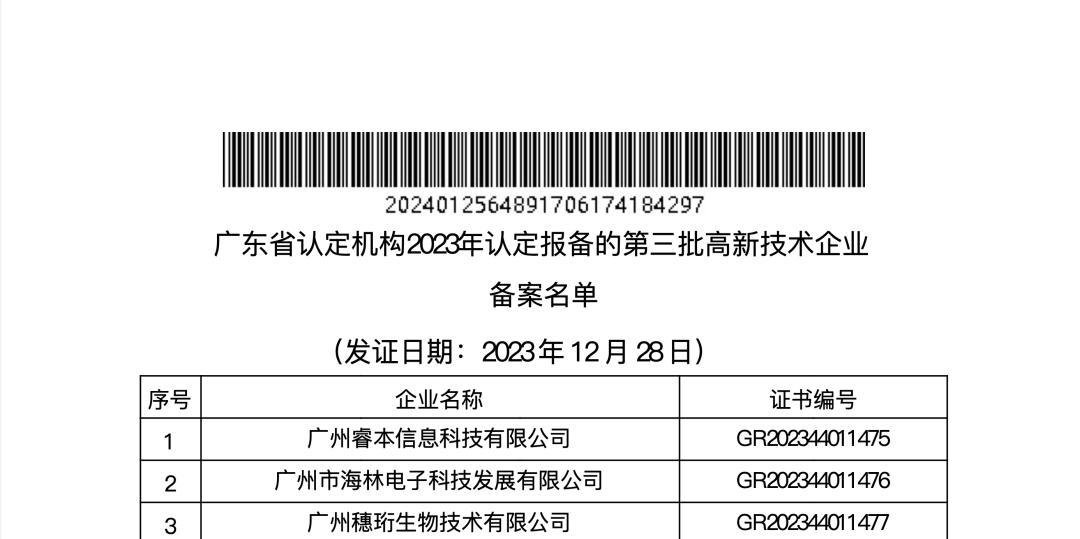 近日,广东省认定机构2023年认定报备的第一批至第三批高新技术企业备案名单予以公示。其中,中创孵化器旗下15家园区企业名列其中,分别是: