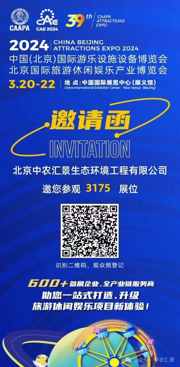在此,我们诚挚地邀请您莅临 中农汇景(3175 展位),共同点亮智慧之光,共同探讨文旅休闲产业的未来发展趋势!