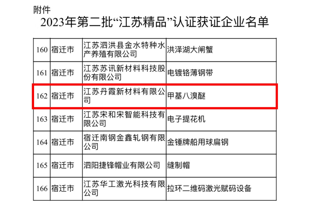 公司首创的高效环保甲基八溴醚生产工艺,获得了省级新技术认证,跻身国际先进水平,打破国际垄断,率先填补国内阻燃环保保温材料领域空白,实现进口替代,为生态环境部力推产品。