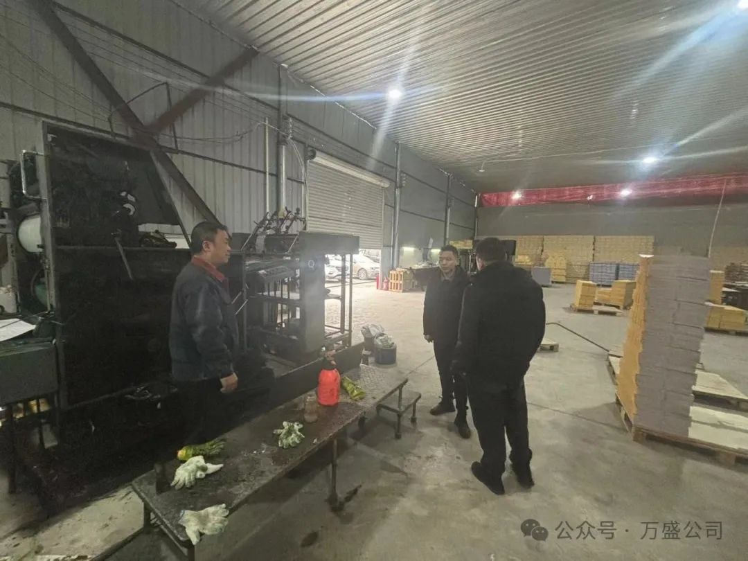 2月5日至6日,万盛集团副总经理王曾林,资产经营部刘治勇到公司教育印刷厂、城区高炮开展节前安全隐患排查工作。