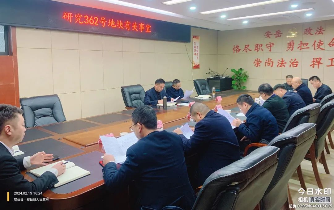 ▶ 2月 19 日,县委常委、政法委书记陈千胜,县政府副县长李林组织召开362号地块有关事宜工作会。县委办、司法局、自规局、征收局、治违办、岳城街道、盛安集团相关负责人参加。