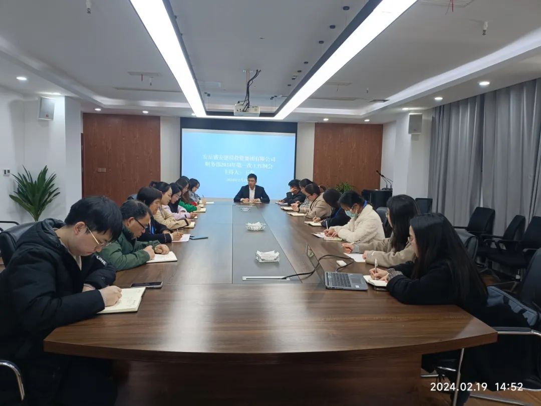 ▶ 盛安集团总经理助理王令主持召开财务管理部2024年第一次工作会,财务管理部全体人员参会。