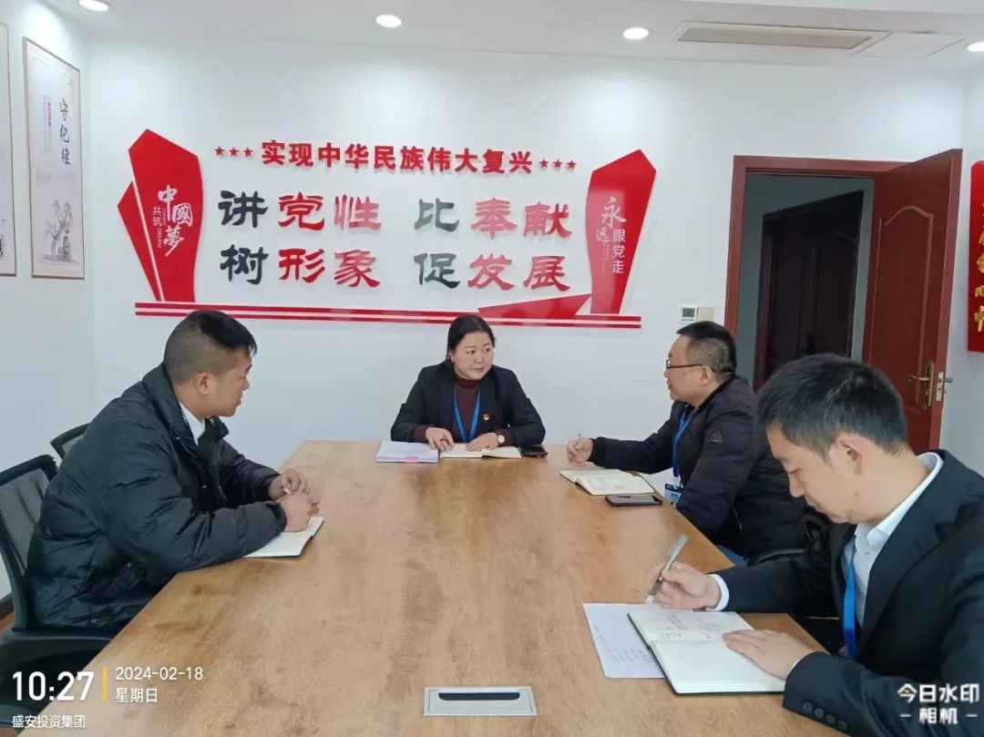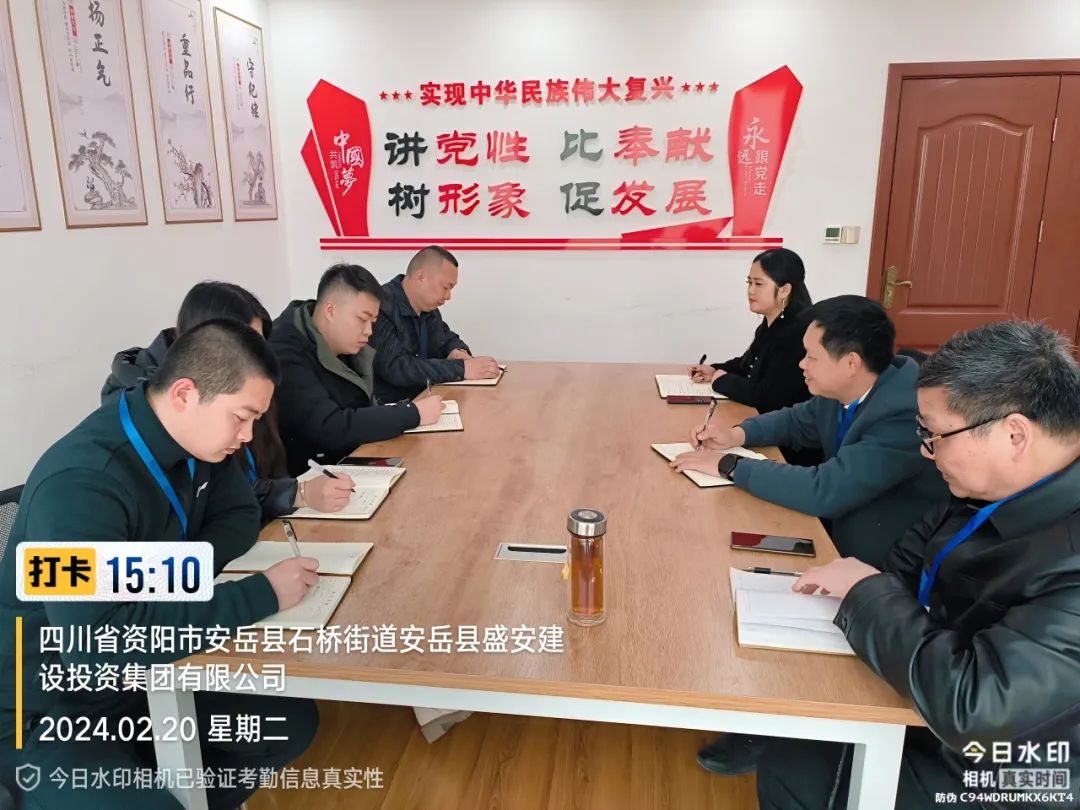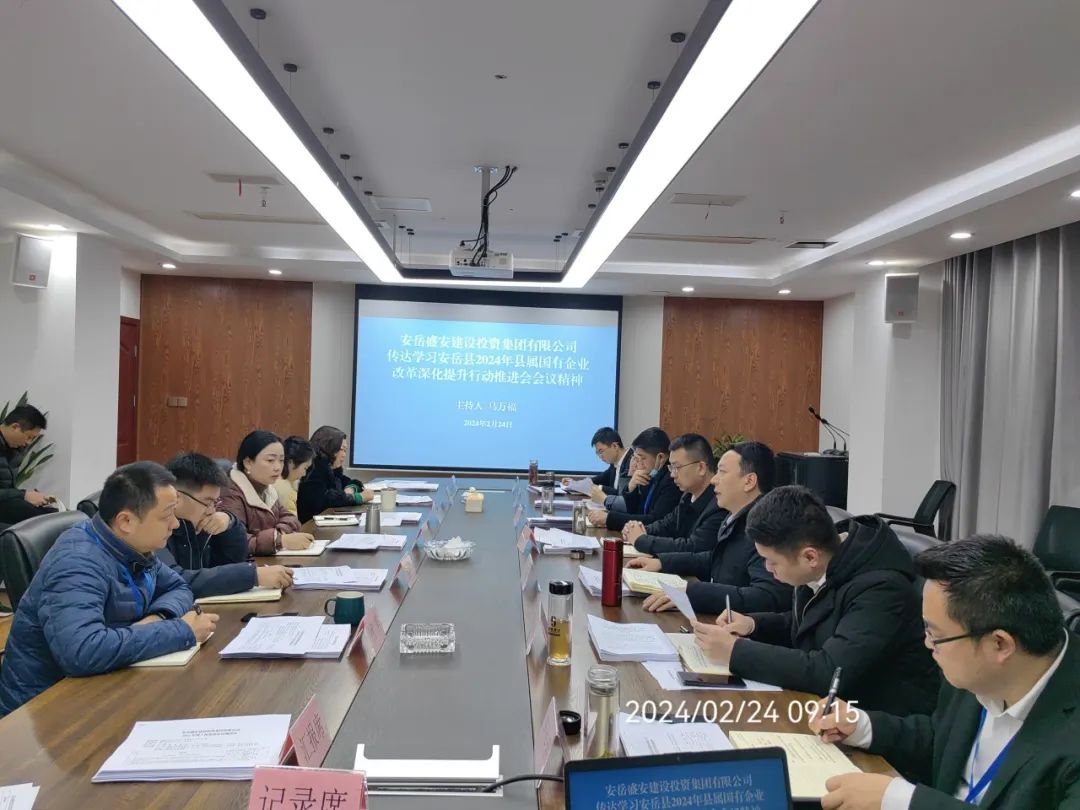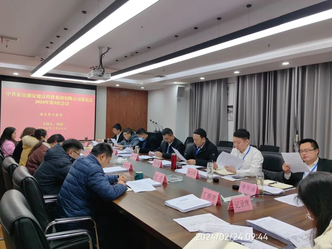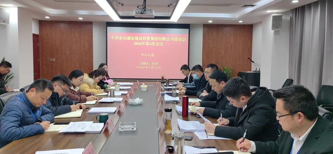 ▶ 2月24日,集团党委书记、董事长、总经理许平主持召开中共盛安集团党委2024年第3次会议暨盛安集团董事会2024年第3次会议。会前开展专题学法、廉政警示教育和“第一议题”学习,重点学习《安岳县县级重大经济事项决策实施细则(试行)》《安岳县政府投资项目决策审批管理办法》,会议传达学习了刘建华书记和赖才建县长在安岳县2024年县属国有企业改革深化提升行动推进会上的讲话精神,审议通过了《安岳盛安建设投资集团有限公司内控审计工作方案》等议题。