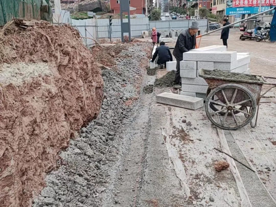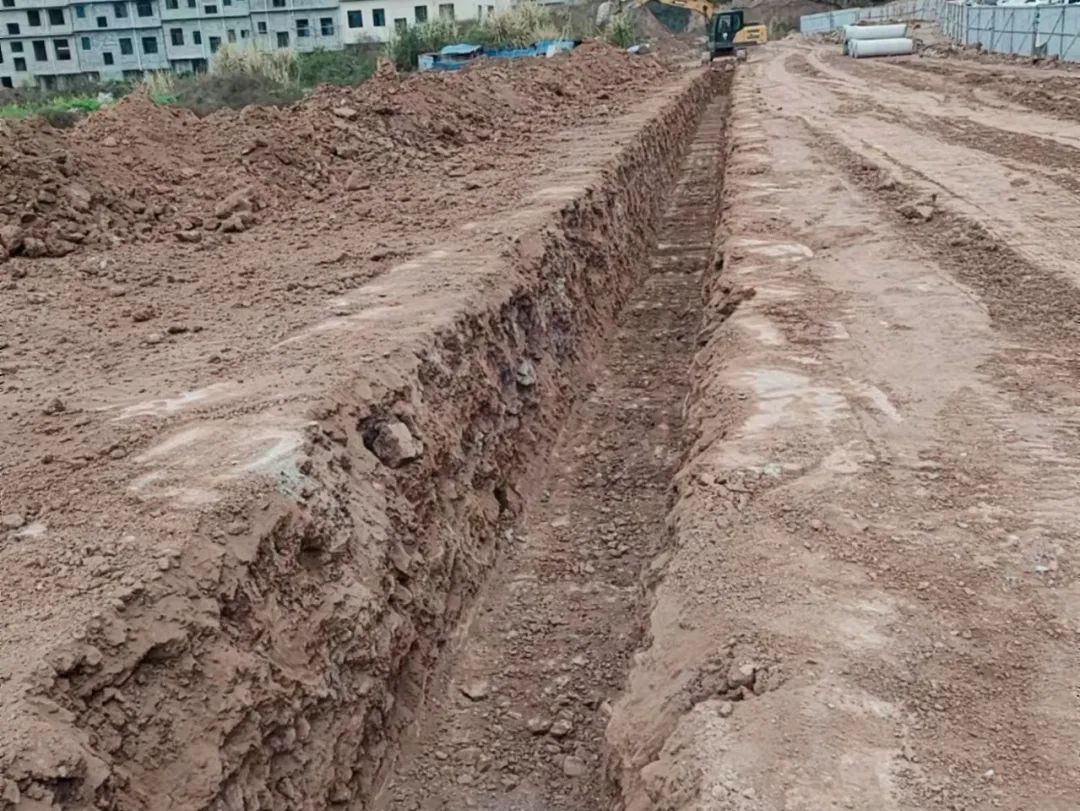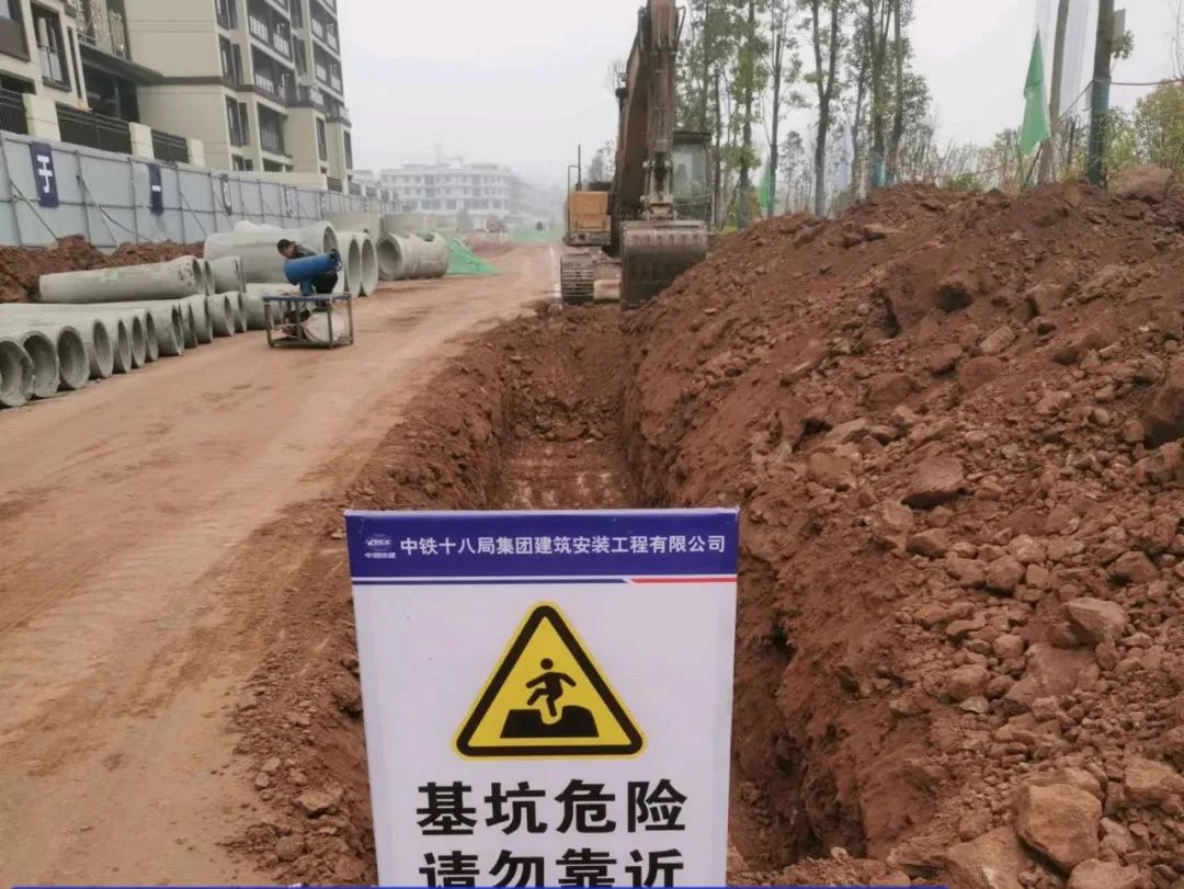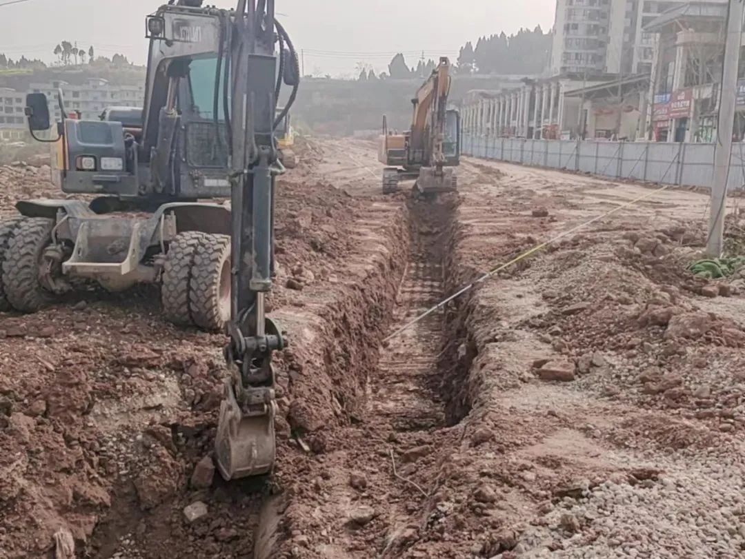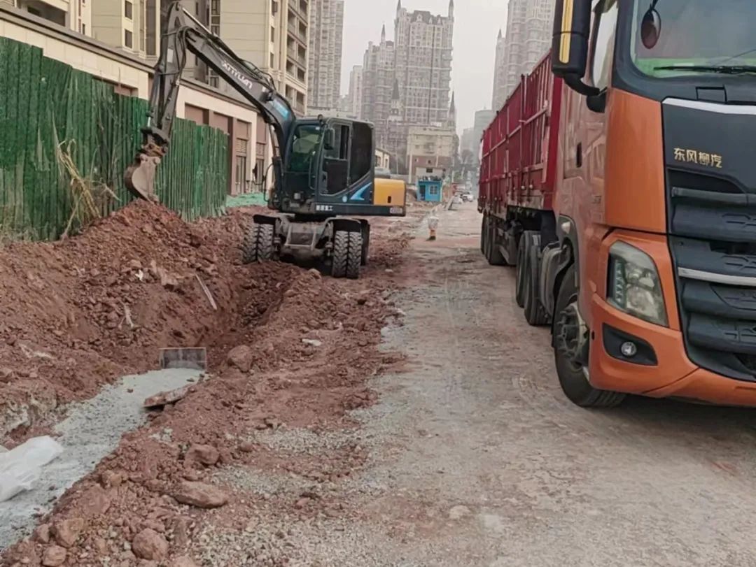 1号路挖雨水管基础,4号路挖路缘石基础和通信管沟。