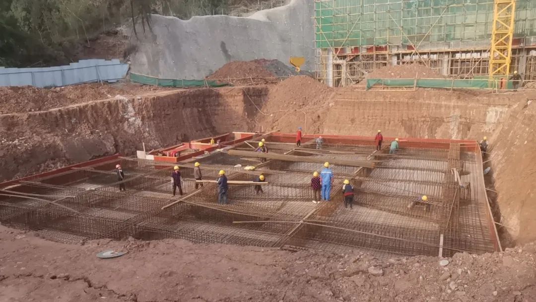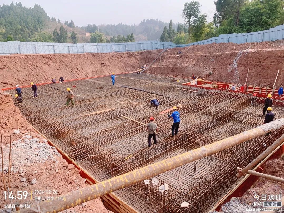 厌氧罐基础、污水处理车间基础钢筋绑扎。