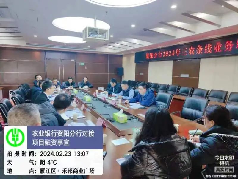 ▶ 农行四川省分行指导安岳项目贷款包装事宜,农行资阳市分行、安岳县支行,盛安集团投运部相关人员参加。