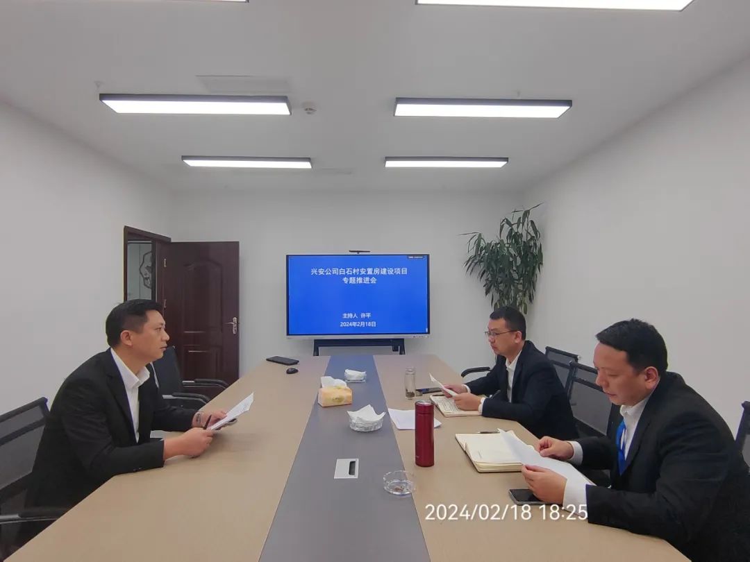 ▶ 盛安集团党委书记、董事长、总经理许平组织专题研究白石村安置房建设项目推进工作。集团党委副书记马万福、兴安公司负责人参加会议。