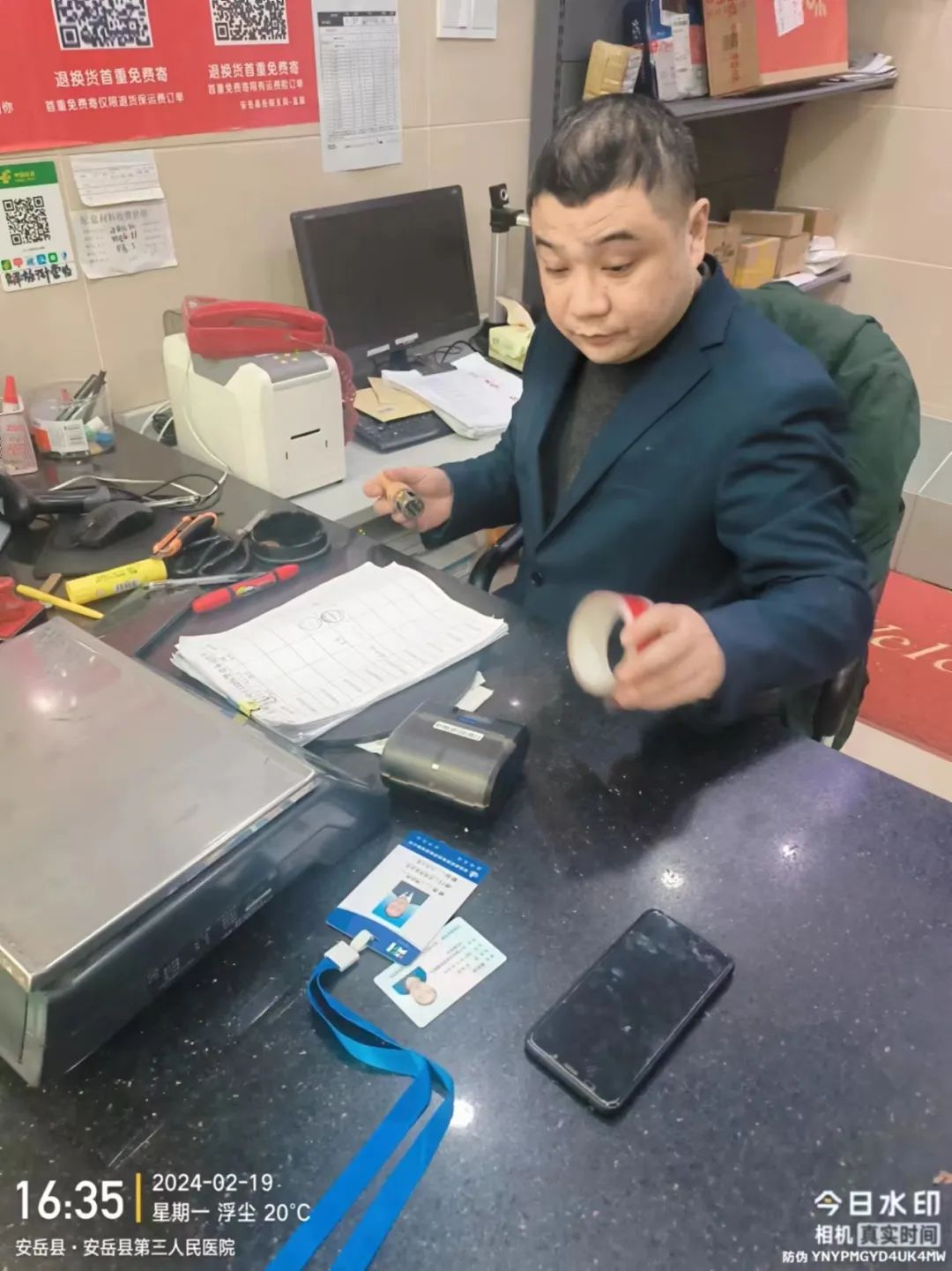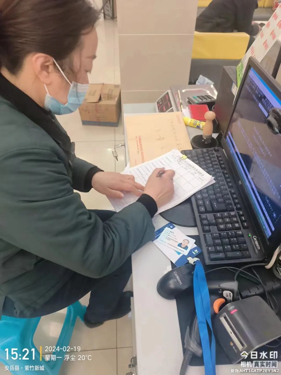 ▶ 2月22日,顺通达公司路边停车收费员办理手持PDA相关事宜。