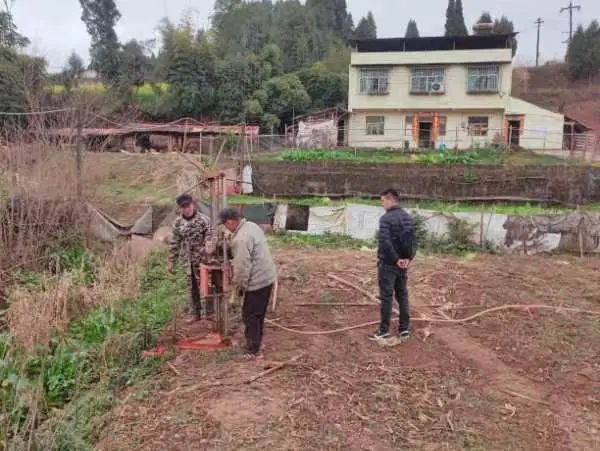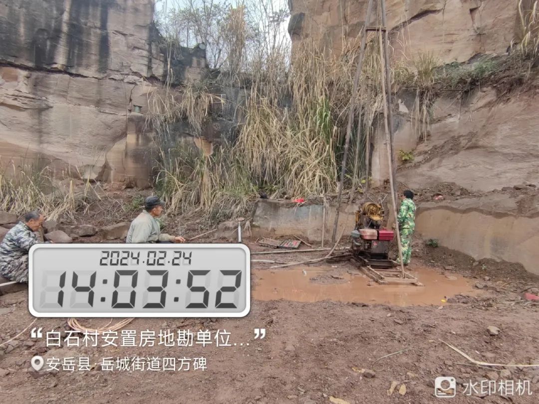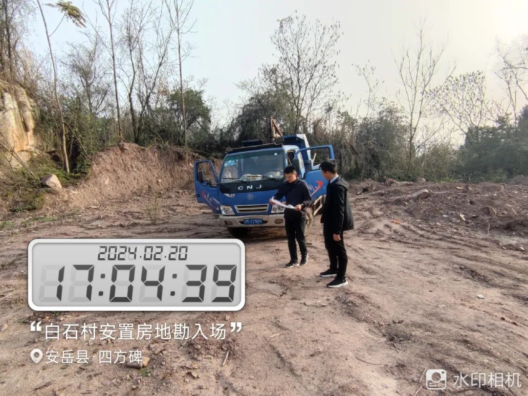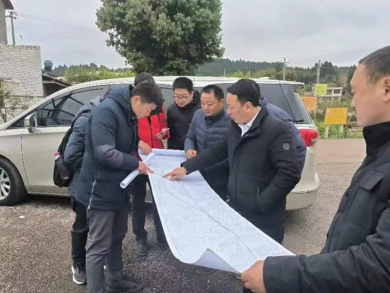 ▶ 顺通达公司查看安岳县二手车交易市场建设项目地质勘查工作情况。
